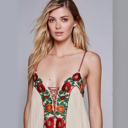 AanbiedingBoho Maxi Jurk met Bloemenstrook