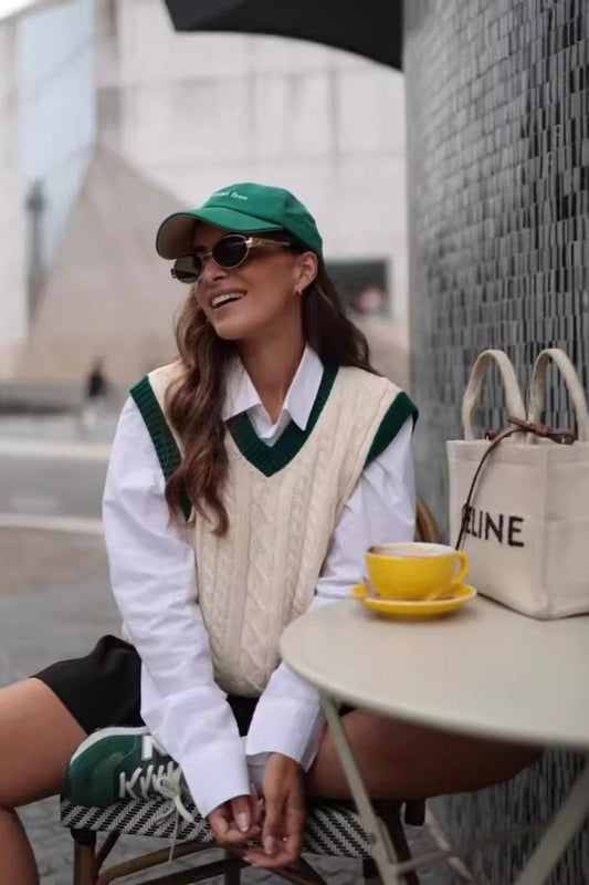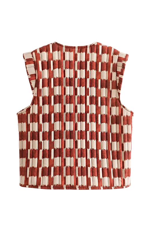 Gilet met Bloemen Afdruk en Gestreepte Voering