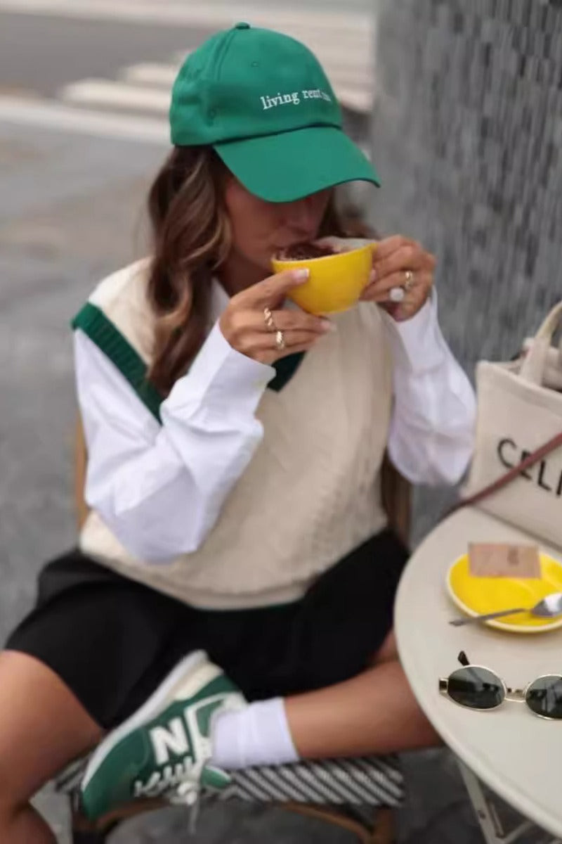 Deze klassieke gebreide spencer met V-hals biedt een tijdloze en veelzijdige uitstraling. Het kabelgebreide patroon en de contrasterende boorden geven een subtiele sportieve tintje, terwijl de zachte stof zorgt voor optimaal draagcomfort. Perfect om zowel los als in laagjes te dragen.