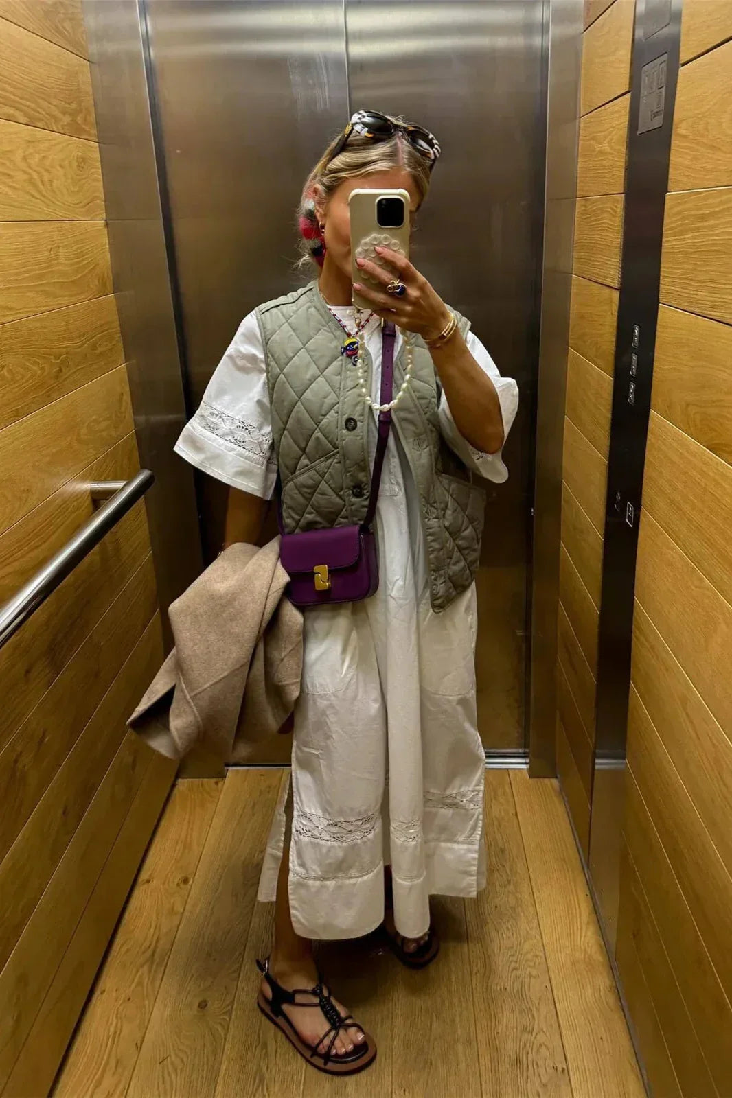 Combineer dit gilet met een witte oversized blouse en een mom jeans voor een nonchalante, moderne uitstraling. Voor een sportievere draai kun je het dragen over een hoodie met een cargobroek en sneakers. Of geef een vrouwelijke kleding juist een stoer accent door het gilet te combineren met een zwierige rok en enkellaarsjes.