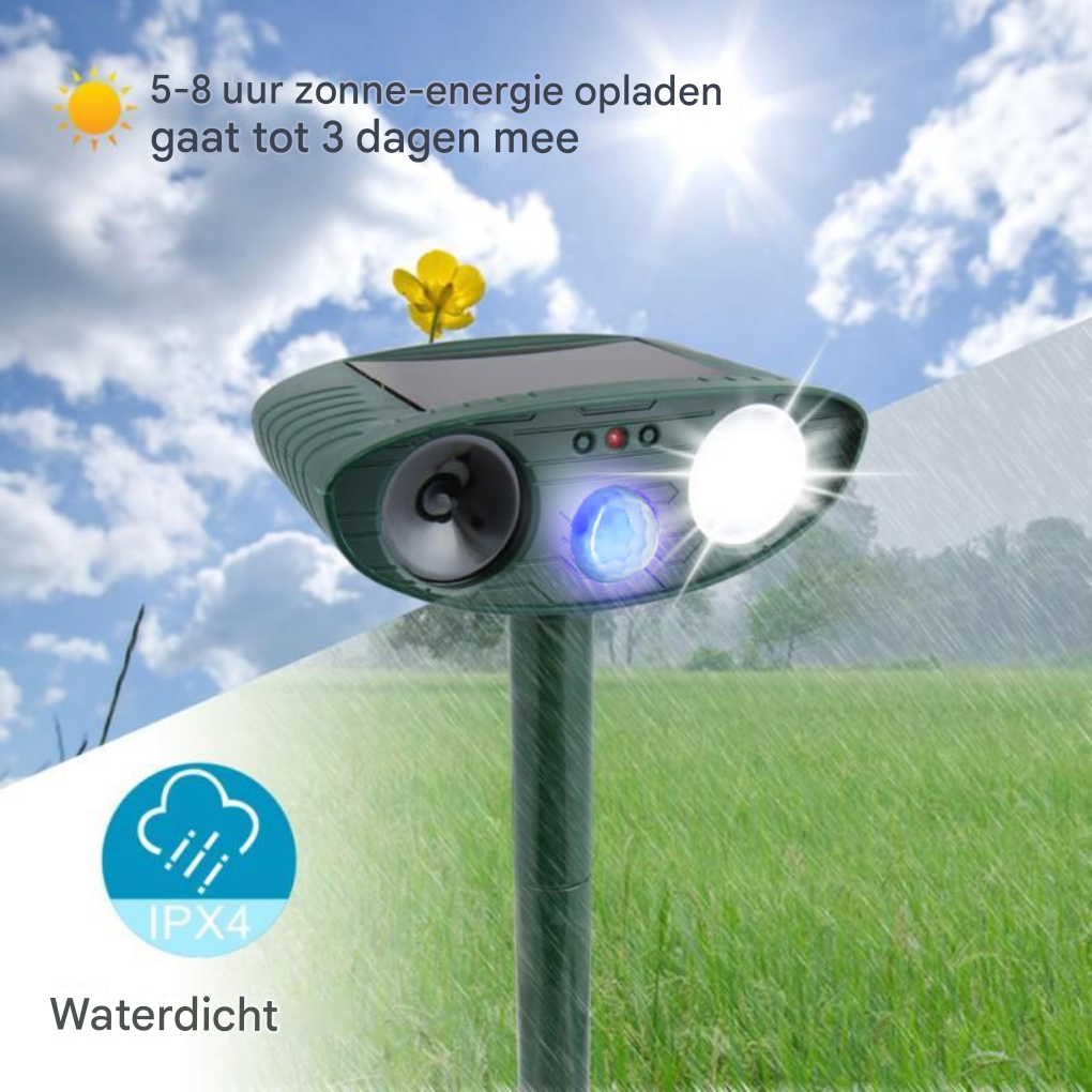 Bewegingsgeactiveerde ultrasone dierenverjager op zonne-energie
