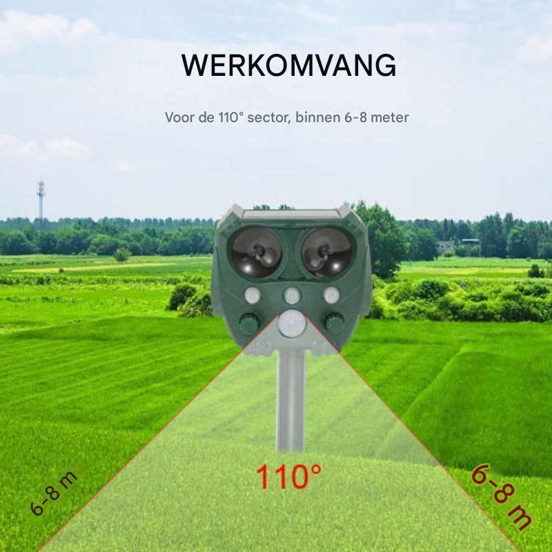 Bescherm uw huis en tuin tegen ongewenste dieren met dit ultrasone verjager. Ontworpen om katten, honden, vossen en ratten veilig af te weren. Het maakt gebruik van ultrasone geluidsgolven die onaangenaam zijn voor ongedierte, maar onschadelijk voor mens en dier. Zo blijft uw terrein veilig en vredig.