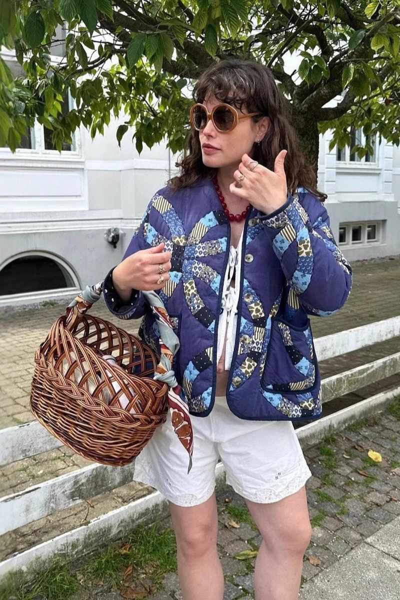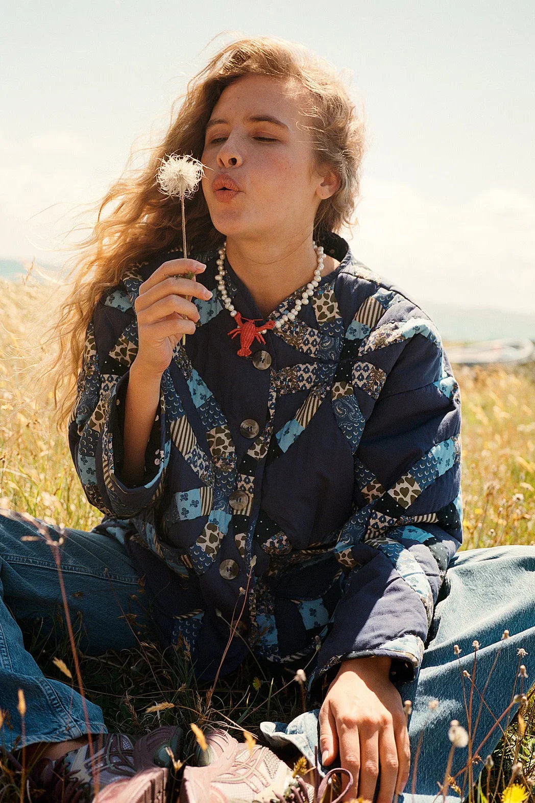Dit gewatteerde jack in vintage-stijl combineert traditionele patchworktechnieken met een moderne pasvorm. De mix van patronen en kleuren geeft een speelse en authentieke uitstraling, terwijl de zachte vulling zorgt voor extra warmte. De grote knopen en praktische zakken maken dit een stijlvolle en functionele keuze voor elke dag.