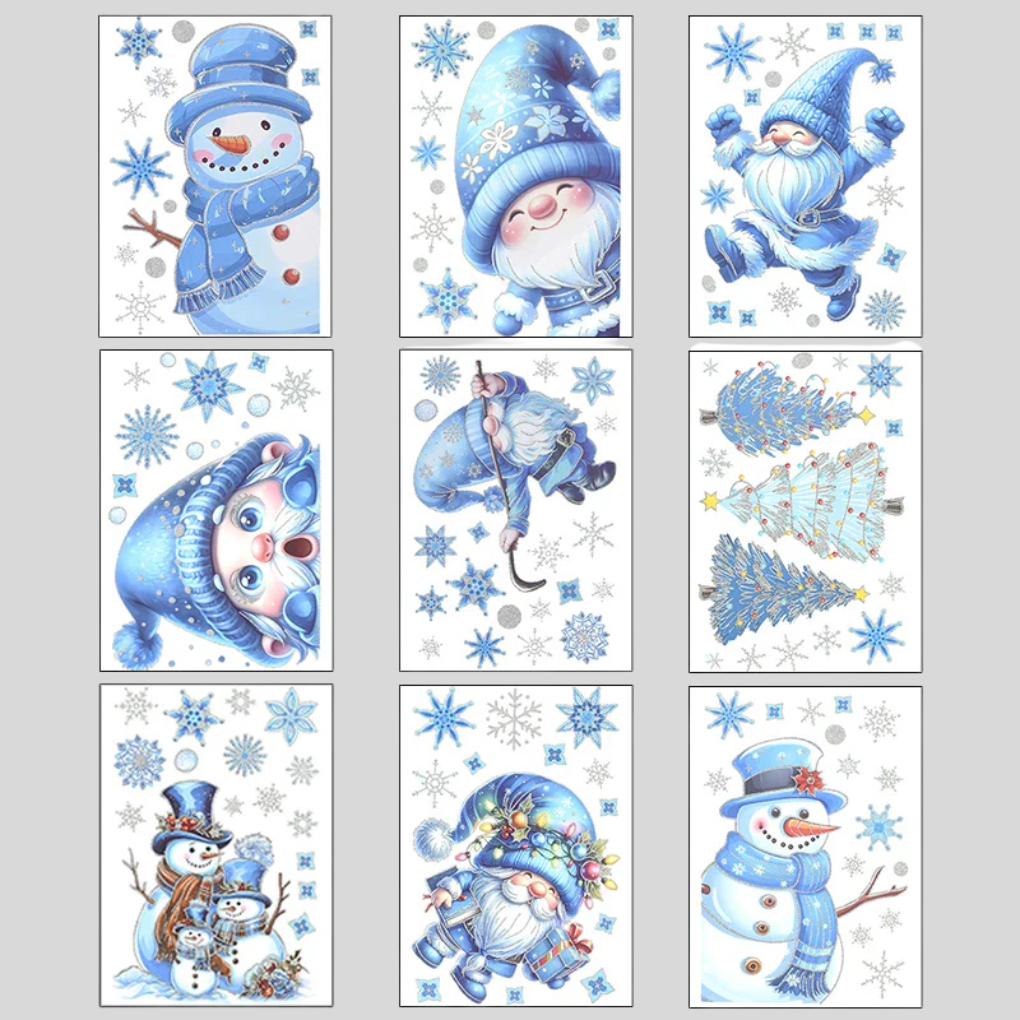 Create a festive window display with this oversized sticker set featuring holiday-themed designs in blue tones. This collection is designed for smooth glass surfaces and allows repeated placement for seasonal decorating. Suitable for living areas, shop windows, or seasonal displays in any space.